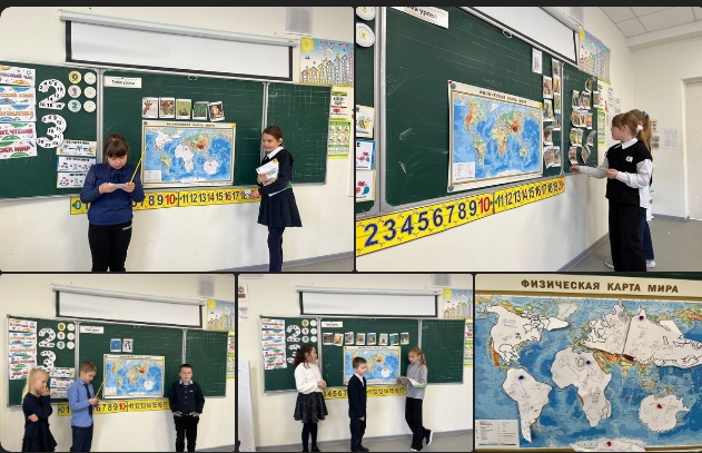 Сегодня обучающиеся 2 А класса путешествовали по материкам. Данное занятие было направлено на закрепление знаний о материках и океанах нашей планеты. Учащиеся познакомились с новыми растениями и животными разных материков, подготовили в группах выступления и защитились. -