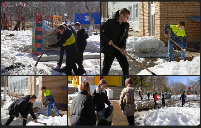 В рамках санитарного двухмесячника, приуроченного к конкурсу «Эковесна-2024», ученики школы каждый день выходят на уборку территории. Весна вступила в свои права, а мы ей помогаем быстрее растопить снег. -