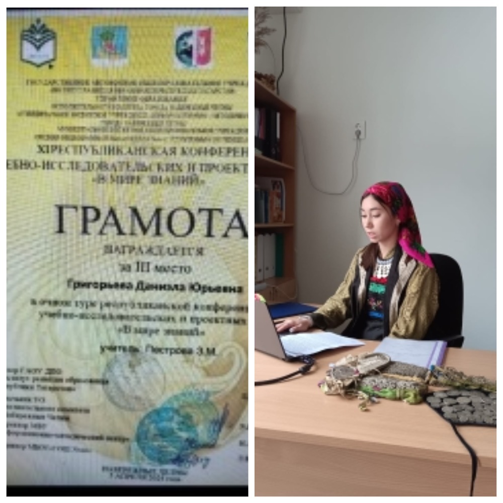 Ученица 10 класса МБОУ" Красноключинская СОШ" Григорьева Даниэла (педагог Пестрова Зинаида Васильевна) участвовала в секции "Искусство" с работой "Народный костюм кряшен:" от истоков к современности" и заняла достойное 3 место. -