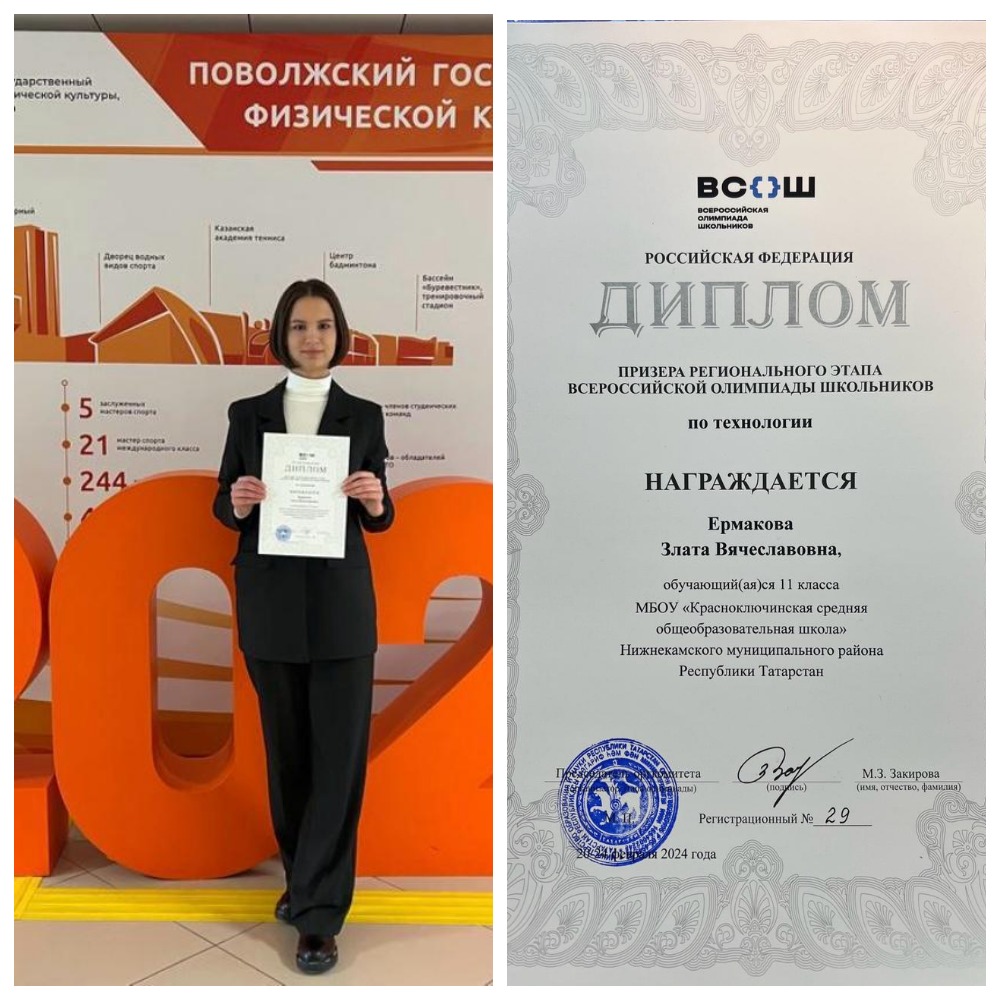 С 19 по 24 февраля 2024 года Ермакова Злата, обучающаяся 11 класса боролась за победу на региональном этапе всероссийской олимпиады по ТЕХНОЛОГИИ. Была очень трудная, напряжённая неделя, но результат того стоил, Злата одержала победу. Поздравляем! Так держать! Готовимся дальше, на Россию! -