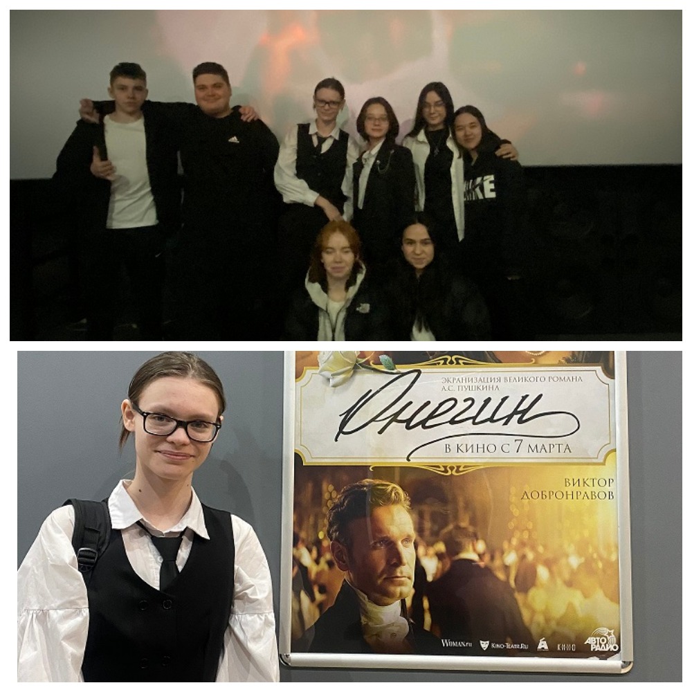 В рамках Недели русского языка и литературы обучающиеся 9 класса совместно с учителем русского языка и литературы ,Швецовой Д.С., посетили кинотеатр, где посмотрели фильм «Онегин»,снятый по мотивам романа А.С. Пушкина «Евгений Онегин».Авторы фильма бережно отнеслись к адаптации классики для большого экрана. Герои фильма разговаривают как стихами, так и прозой. Экранизация очень добротно и по-новому показывает классику русской литературы.