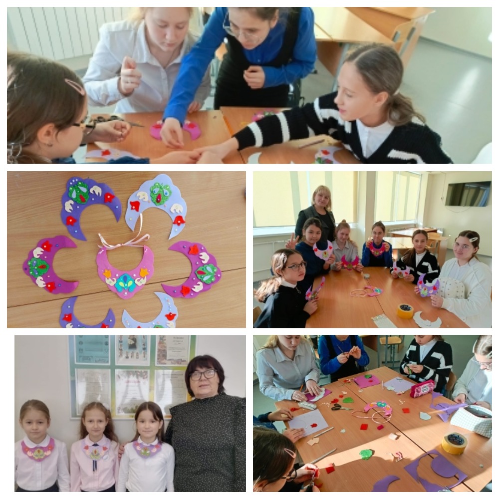Обучающихся 5-6 классов совместно с педагогами изготовили украшение "күкрәкчә" (изү).