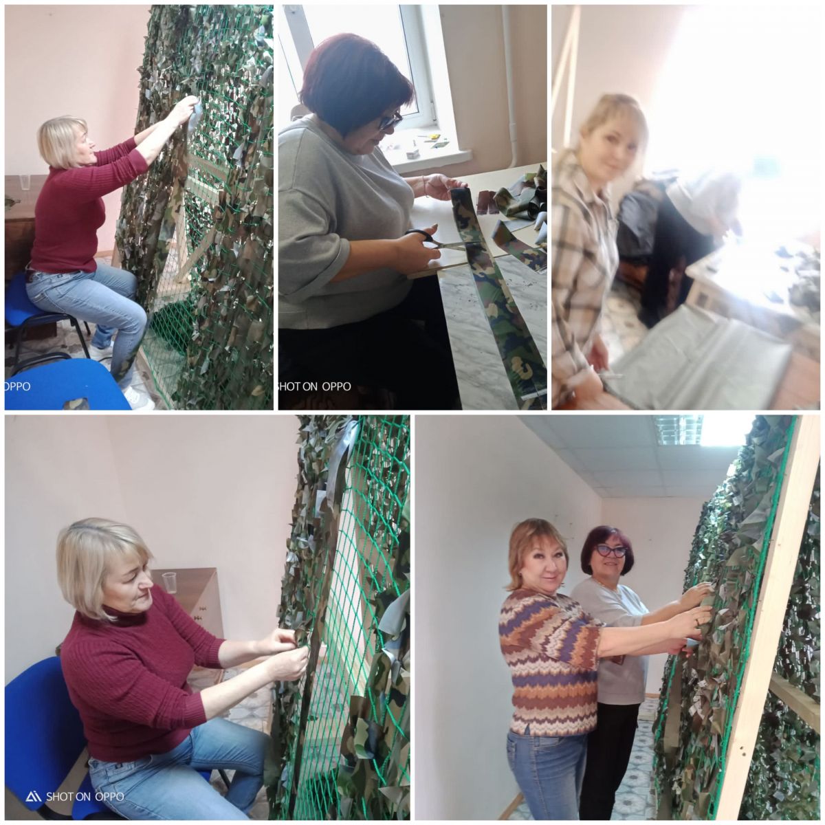 Вот и наши учителя МБОУ "Красноключинская СОШ" Петрова З.В., Хабибуллина Г.М. и Санникова Д.Н. приняли участие в изготовлении маскировочных сетей под руководством волонтёра Шамсутдиновой Р.Т. в Доме Ветеранов.