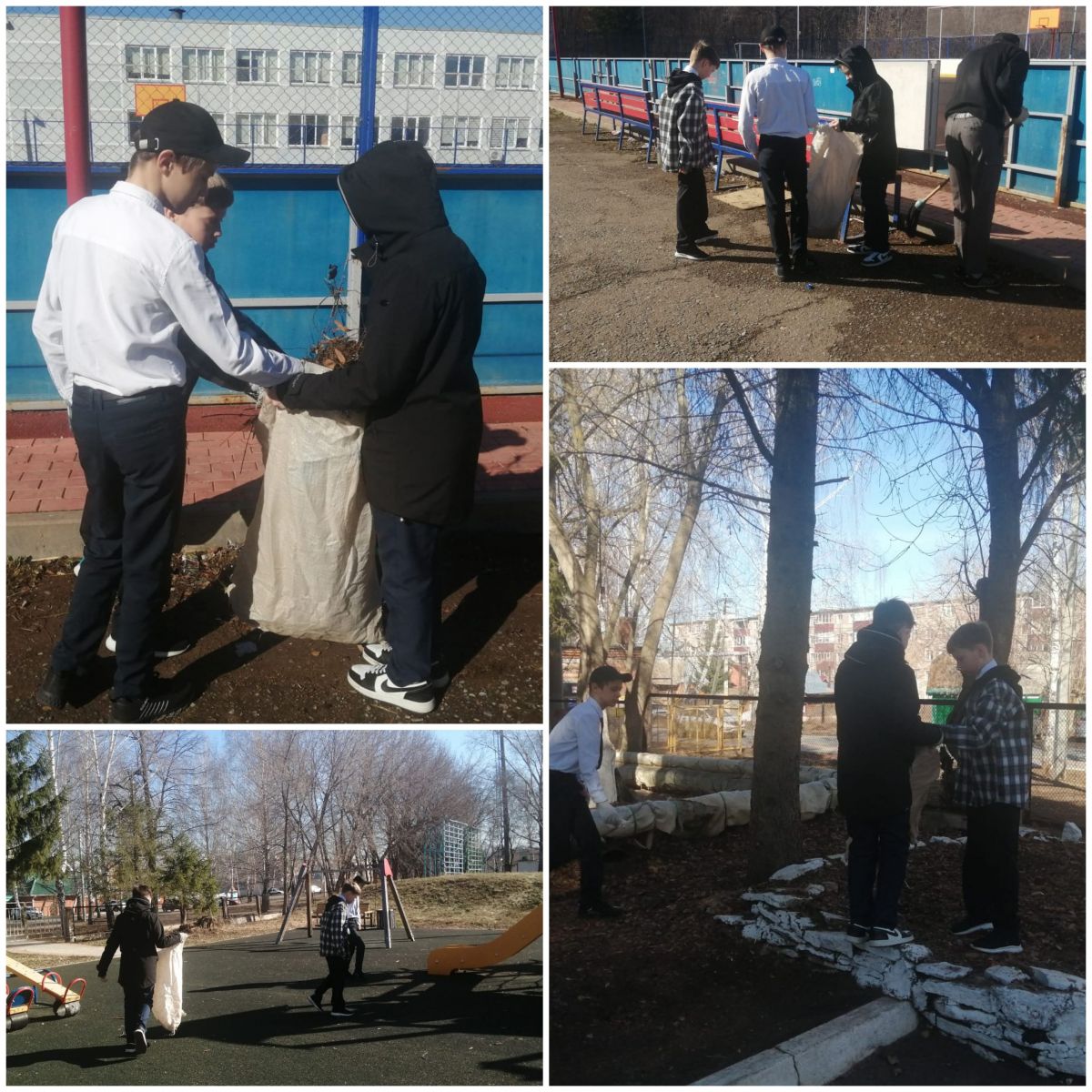 3 апреля члены отряда РДШ вышли на уборку территории школы. Акция проводилась под девизом "Мы вместе создаём будущее! ". -