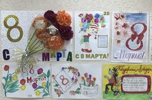 7 марта учащиеся с утра поздравляли учителей и сотрудников школы с 8 Марта. Встречали у входа с поздравлениями, дарили подарки и цветы, показали красочный концерт. -