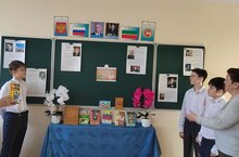 Ко дню знаменательной даты в нашей школе была организована выставка книг и рисунков.