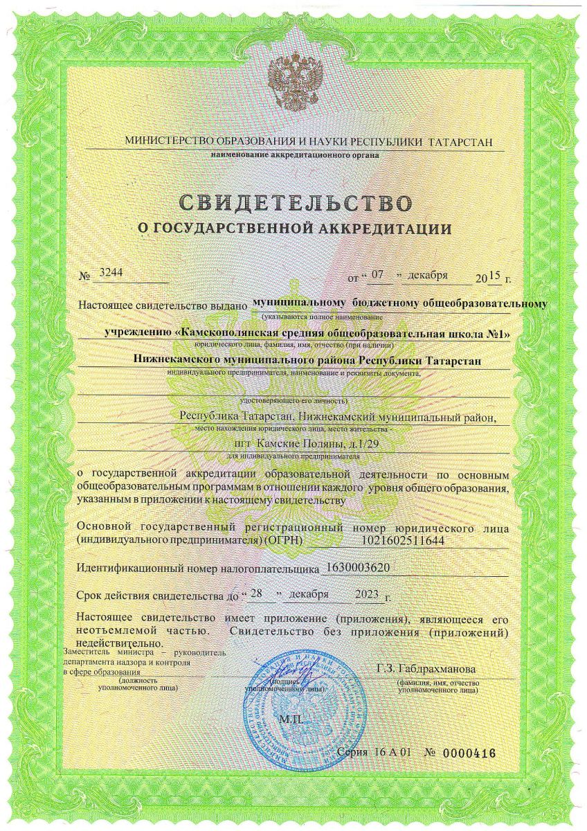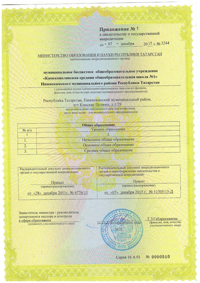 МБОУ «Камскополянская средняя общеобразовательная школа №1» Нижнекамского муниципального района Республики Татарстан/Татарстан Республикасы Түбән Кама муниципаль районының «Кама Аланы 1 нче урта гомуми белем бирү мәктәбе» муниципаль бюджет гомуми белем бирү учреждениесе