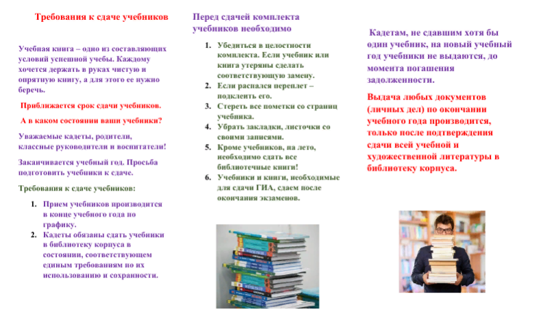 Требования к сдаче учебников