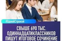 Сегодня для около 691 тыс. российских одиннадцатиклассников проводится итоговое сочинение. Оно является допуском к сдаче ЕГЭ. На выполнение работы школьникам отводится 3 часа 55 минут. Среди участников и выпускники прошлых лет. Своё желание написать сочинение выразили 2 282 человека. Одиннадцатиклассники с ОВЗ вместо сочинения пишут изложение. Таких участников в этом году 10,7 тыс. человек. Желаем успехов!