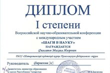 27 марта ученик 10 класса Филиппов Михаил выступил с индивидуальным проектом "Вторичное использование пластмасс" на Всероссийской научно-образовательной конференции "Шаги в науку" и занял 1 место! Руководитель проекта - учитель химии и биологии Фарвазова Э. С. Поздравляем! Гордимся!