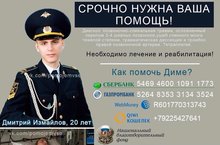 Молодому военному срочно нужна Ваша помощь!Расскажу вам историю о молодом человеке, который мечтает стать офицером. Его зовут Измайлов Дмитрий, ему 21 год. Дима – курсант 2 курса Военного университета Минобороны РФ, спортсмен, единственный сын своих родителей, верный друг, смелый, добрый и веселый парень.
