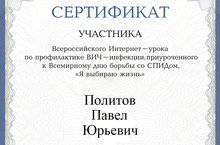 Сегодня был проведен всероссийский интернет-урок по профилактике ВИЧ–инфекций "Я выбираю жизнь"