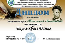 С 18 по 31 октября 2023 года в Уфе проходил видеоконкурс чтецов "Тот самый Маяковский", посвященный 130-летию со Дня рождения Владимира Маяковского.Участие в конкурсе приняли жители из городов всей России (по разным возрастным категориям), в том числе кадет 4 взвода ТКК Данил Барлыкбаев.