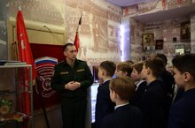 Руководитель уникального музея нашего корпуса Галимзянов Р.А. провел экскурсию для гостей и рассказал историю Героя Советского Союза Гани Сафиуллина, а также историю кадет- выпускников нашего корпуса- А.Осипова и Ш.Маняпова, погибших на СВО.