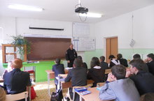 Мәктәптә куркынычсызлык айлыгы дәвам итә. Участковый инспектор Иванов Ю.А. укучылар белән очрашты. Аларга куркынычсызлык кагыйдәләрен исләренә төшерде, хокук бозу һәм закон алдында җаваплылык турында сөйләде.