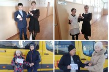 Акция «Белая ленточка» 19.11.2022 Сегодня обучающиеся раздали черно-белые памятки и завязали белые ленточки на руку водителям, пешеходам, детям.