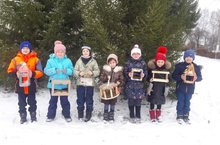 Акциягә кушылып, 1 нче сыйныф укучылар (сыйныф җитәкчесе Калимуллина И.Г.) әти-әниләре белән берлектә кошлар өчен җимлекләр ясап килделәр һәм бакча территориясенә элделәр.