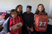 Бөек Җиңүнең 77 нче еллыгы алдыннан сугыш һәм тыл ветераннарына бүләкләр тапшыруда мәктәп укучылары да катнашты.