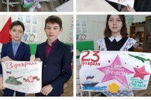 7 нче сыйныф укучылары (укытучы Закиева Р.Н.) барлык ир-егетләрне Ватанны саклаучылар көне белән котлап, газеталар чыгардылар.