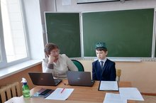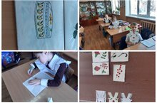 1 нче сыйныф укучылары (укытучылары Краснова Ф.Г.) технология дәресендә татар милли кием үрнәкләре белән таныштылар. Алар калфак, түбәтәй, читек бизәлешен карадылар. Аппликация формасында алъяпкыч бизәделәр. / Учащиеся 1 класса (учитель Краснова Ф. Г.) на уроке технологии ознакомились с образцами татарской национальной одежды. Они осматривали калфак, тюбетейку, читек. В форме аппликации украшали передник.
