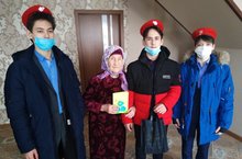 В рамках проекта "У войны не женское лицо..." обучающиеся школы (руководитель Сулейманов Р.Р.) посетили труженицу тыла и ветерана педагогического труда Сулейманову Саиму Сабировну. Ветерана поздравили с Международным женским днем и вручили ей подарок от коллектива школы. / Юнармиячеләр тыл һәм хезмәт ветераны Сөләйманова Самиә Сабир кызы белән очраштылар. Ветеранны Халыкара хатын-кыз көне белән тәбрикләп, истәлекле бүләкләр тапшырдылар.