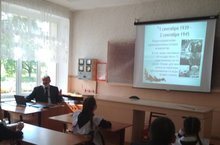 Классный руководитель 4 класса Гульчачак Саматовна на классном часе рассказала детям о том, что разрушительная, кровопролитная вторая мировая война, которая началась 1 сентября 1939 года нападением фашистской Германии на Польшу, закончилась в сентябре 1945-го года непродолжительной, но не менее жестокой и разрушительной войной с Японией. 2 сентября 1945 года Японское правительство подписало Акт о безоговорочной капитуляции. Южный Сахалин и Курильские острова были возвращены Советскому государству. Она также рассказала некоторые эпизоды и исторические факты этой ужасной войны.