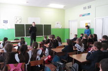 Сегодня в нашей школе состоялась встреча учащихся и педагогов с инспектором отдела ГИБДД УМВД России по Нижнекамскому району старшим лейтенантом Бикаевым Ильясом Г., который провел профилактическую беседу о безопасности дорожного движения.