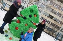 Педагоги-организаторы Носкова И.М. и Фаррахова Л.И. с учениками из 8Б и 10 класса слепили фигуру-елку на открытие Елки поселка. Несмотря на холод и трудности, девочки и мальчики держались молодцом. Через несколько часов глыба льда превратилась в чудесную елочку!