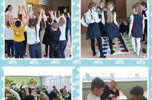 Синий день - День творчества. Весело и активно он прошёл во время линейки на третьем этаже, а весёлое настроение организовали ученики 4А класса (классный руководитель Татаринцева Т. А)