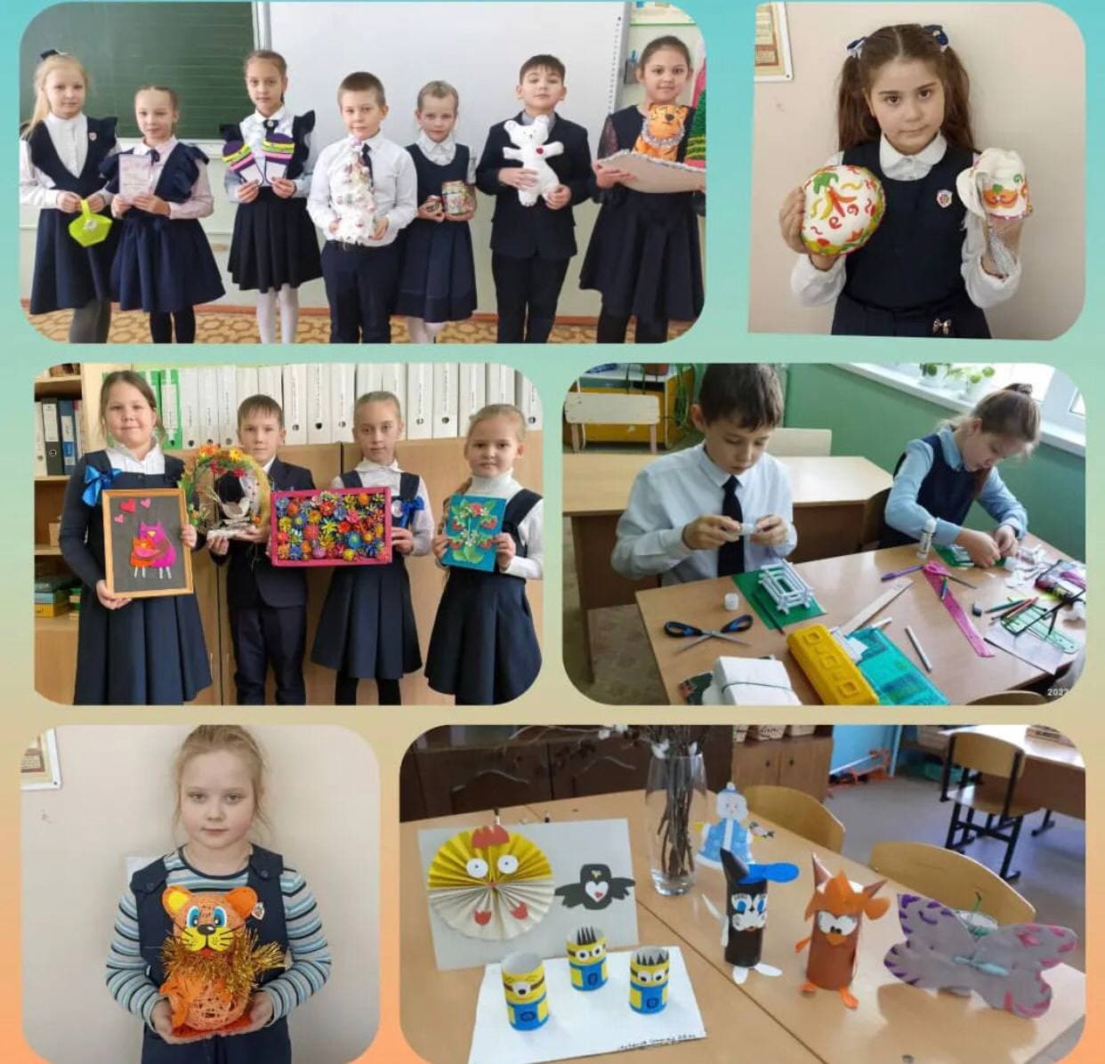 Синий день - День творчества. Обучающиеся начальной школы приготовили поделки из разнообразного материала, работы были посвящёны Году народного искусства и нематериального наследия народов России. Работы получились очень разнообразными, из которых организовали выставку детских работ.Обучающиеся 1-4 классов -талантливый народ!