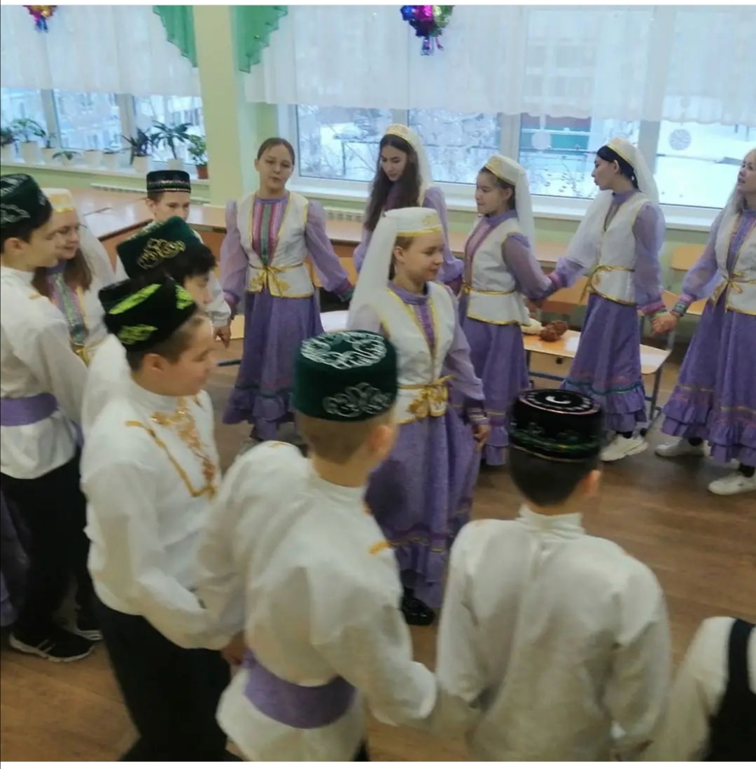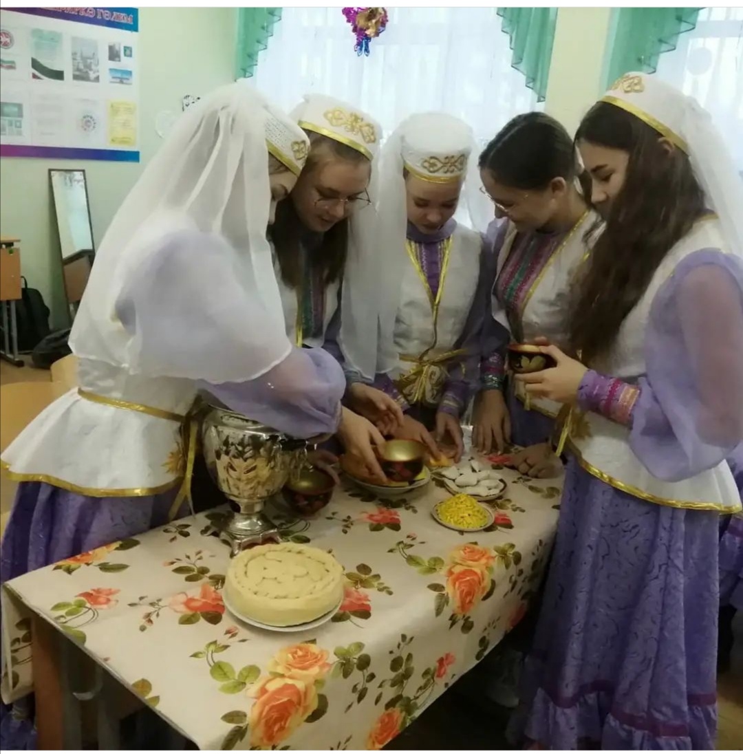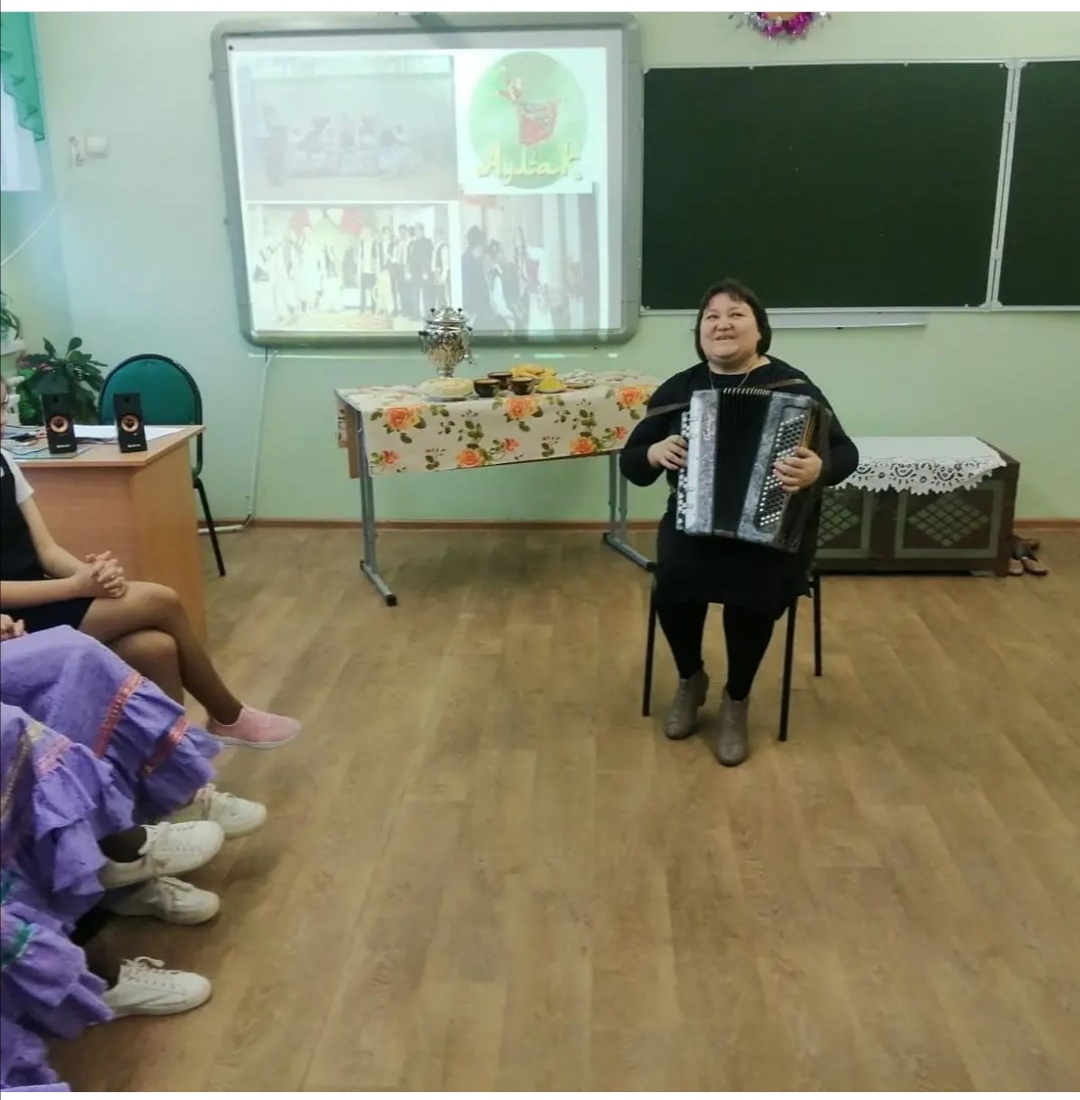 Учителя родного языка и литературы Хусаинова Э. А. и Хайруллина Л. А. провели мероприятие ("Посиделки - Аулак ой")в 7Б классе, посвященное окончанию Года родных языков и народного единства в Республике Татарстан.