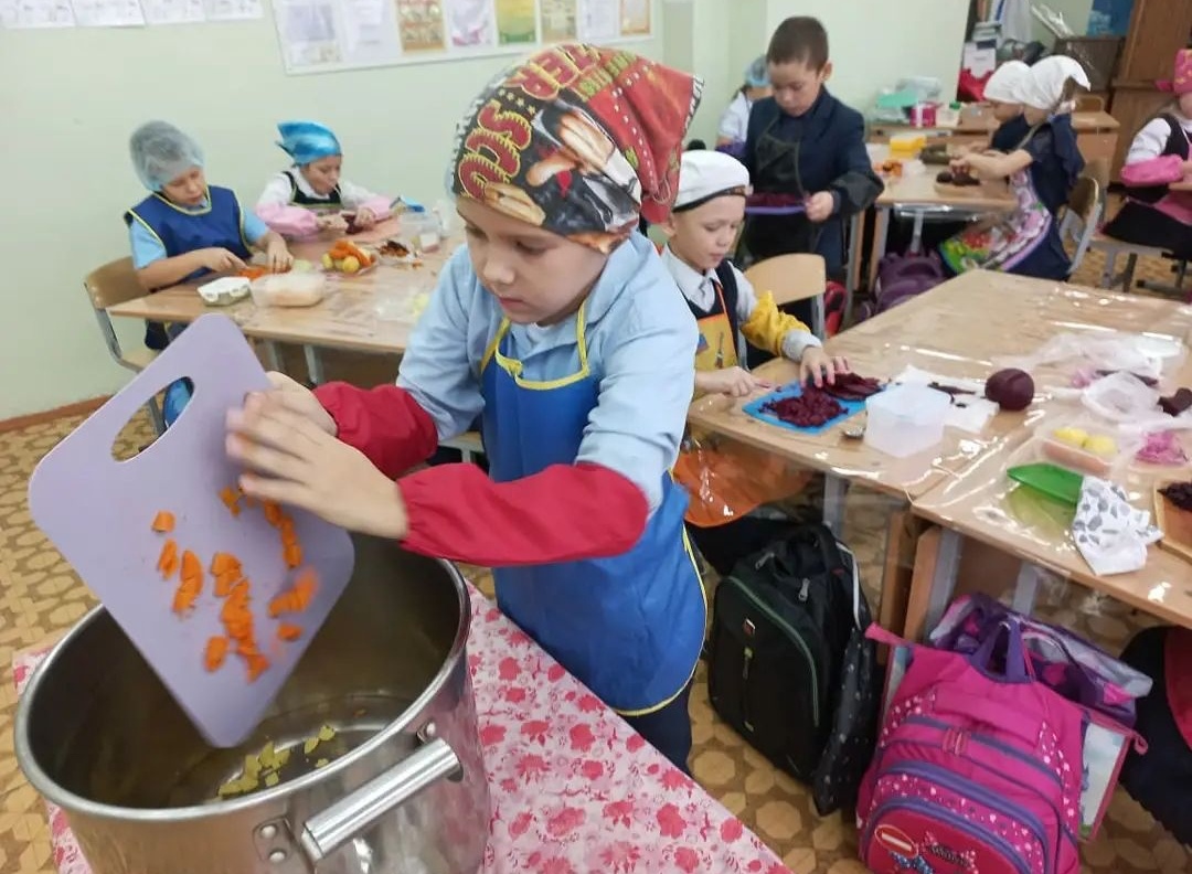 В рамках внеурочной деятельности по 2А классе прошла профориентационная работа. Ребята пробовали быть поварами. Все получилось! Винегрет - пальчики оближешь! (Классный руководитель Орел Т.А.)
