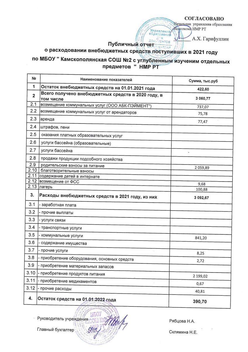 Публичный отчет о расходовании внебюджетных средств 2021г