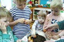 По традиции каждый год воспитатели с детьми сажают лук.Вот и в этом году пришло время. Воспитатель Гусева И.А. рассказала и показала последовательность посадки лука, о его пользе. Дети вместе с Ириной Анатольевной посадили лук и будут поливать и наблюдать за его ростом.