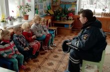 В детском саду прошла встреча детей с инспектором ГИБДД Башировым Д.К.. Инспектор провел с детьми беседу на тему "Безопасность на дорогах", рассказал о правилах поведения на дороге в зимний период.