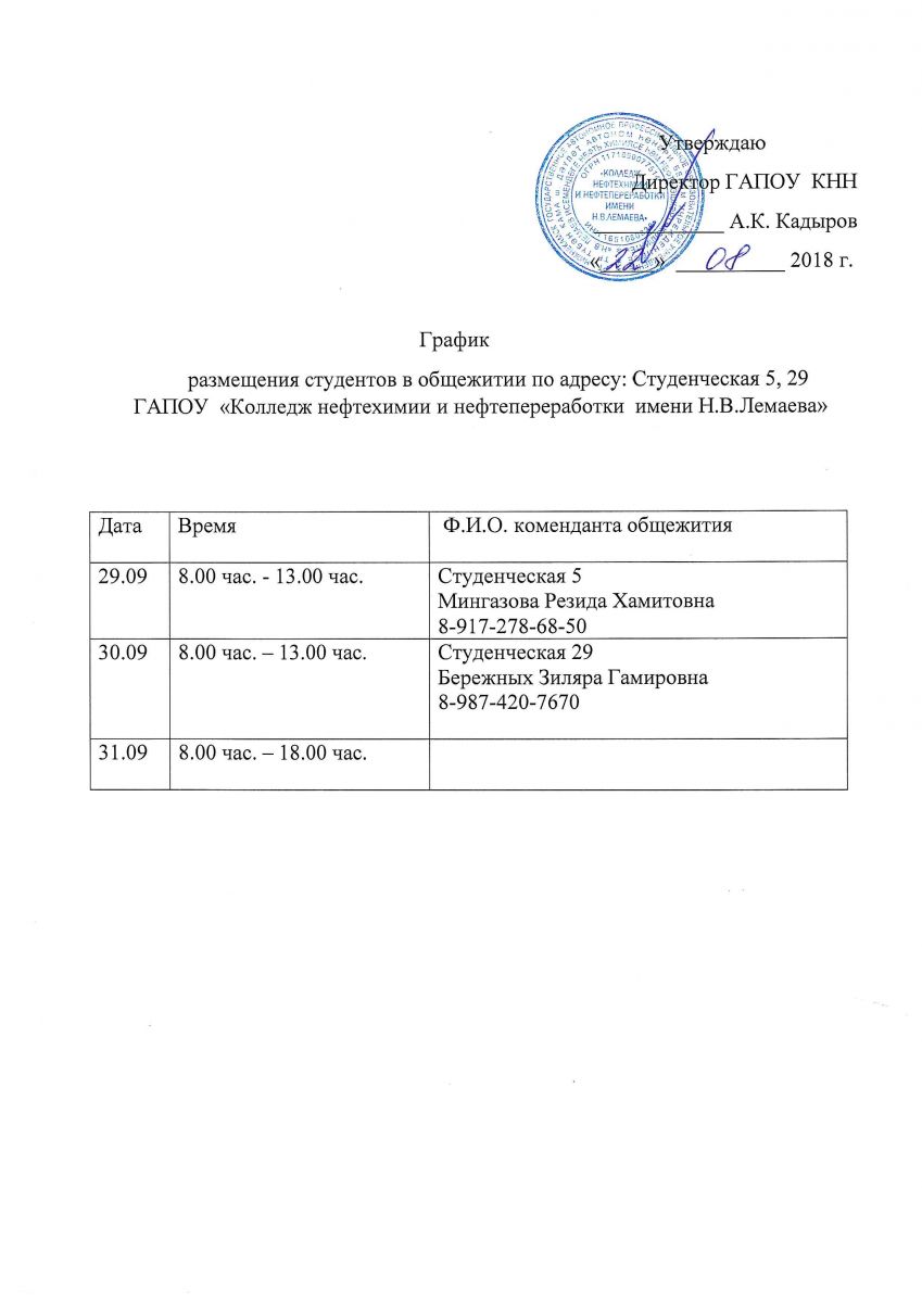 График размещения студентов в общежитии