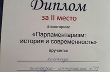 Поздравляем команду девочек 11а класса со II местом в викторине "Парламентаризм: история и современность", организованной Казанским Инновационным Университетом им. В.Г. Тимирясова! Молодцы!!!