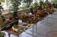 Холл нашей гимназии украсили "Дары осени". Проходит школьный этап муниципального конкурса. В пятницу на еженедельной общешкольной линейке будут подведены и объявлены итоги, а победители направлены на муниципальный этап конкурса "Дары осени" в детский эколого-биологический центр