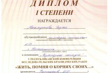 Итоги V Республиканской конференции исследовательских краеведческих работ "Жить, помня о корнях своих..." 07.02.2017