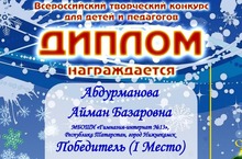 Поздравляем! Закончился всероссийский творческий конкурс "Зимняя сказка", в котором приняли участие учащиеся 10 класса. Были отправлены работы в номинацию "Я исследователь". Поздравляем Абдурманову Айман (1 место), Габдуллину Гузель (2 место), Ягмырову Айгуль (3 место) (руководитель Жданко С.Д.) Желаем дальнейших творческих успехов!