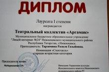 Театральный коллектив "Аргамак" МБОУ "Лицей-интернат №24" НМР РТ г. Нижнекамск победил на Республиканском конкурсе "Город творчества".