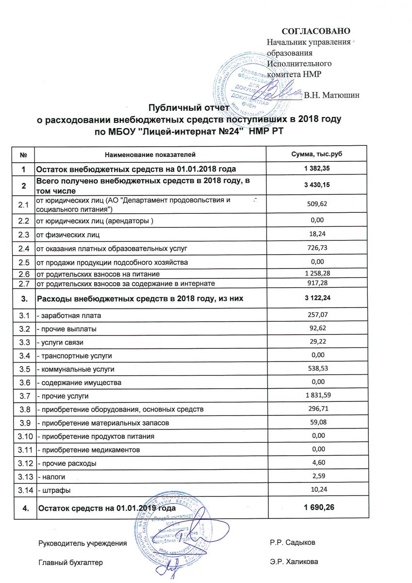 Публичный отчет о расходовании внебюджетных средств за 2018г.