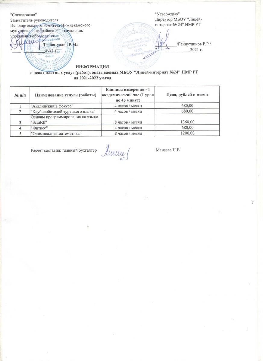 - Информация о ценах платных услуг (работ) на 2021-2022 учебный год