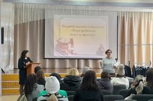 Встреча с родителями будущих первоклассников. Директор лицея Пустоплеснова О.О. выступила с приветственным словом перед родителями.