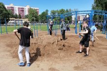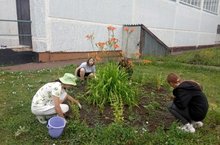 Ребята из трудового отряда пришкольного лагеря продолжают заботиться о своем любимом лицее.