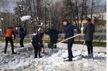 В рамках проекта "Эко ВЕСНА" ребята 9а класса под руководством учителя ОБЖ Абитова Марата Хасановича , вооружившись лопатами, решили помочь и раскидать снег на территории лицея.