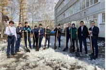 16 апреля ученики 11а класса (классный руководитель Насырова Миляуша Сальмановна) очистили участок от оставшегося снега и мусора.