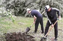 V трудовая четверть продолжается. Ребята трудятся на пришкольном участке.