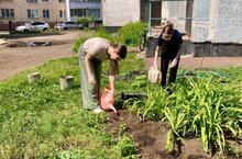 Полив цветов на участке лицея — важная часть ухода за растениями, которая помогает сохранить их здоровье и красоту. Ребята из трудовой бригады все делают правильно.