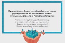 Муниципальное бюджетное общеобразовательное учреждение "Лицей №14" Нижнекамского муниципального района Республики Татарстан / Татарстан Республикасы Түбән Кама муниципаль районның “14нче лицей” муниципаль бюджет гомуми белем бирү учреждениесе